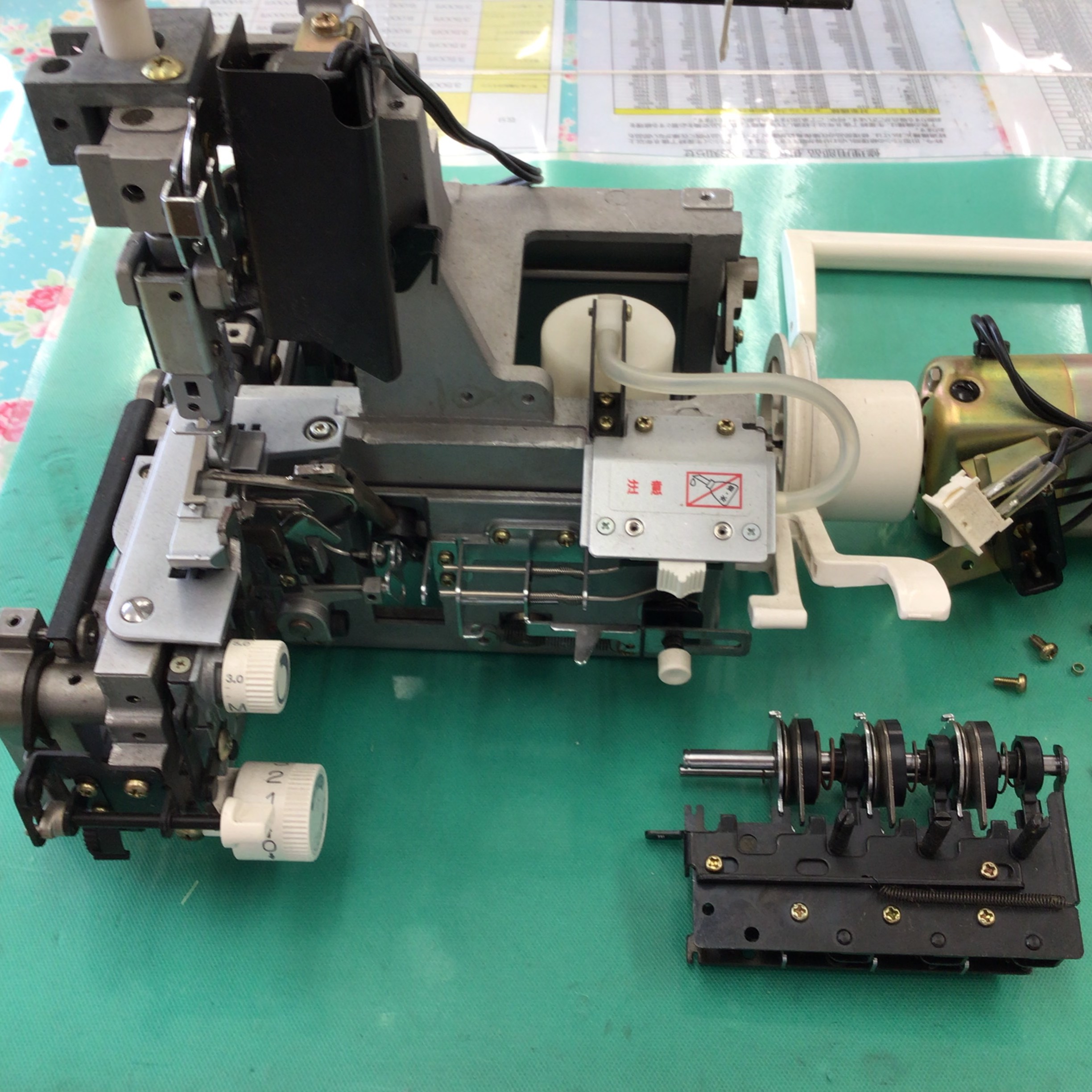 外枠外し下ルーパー糸とうし、糸調子部分外し