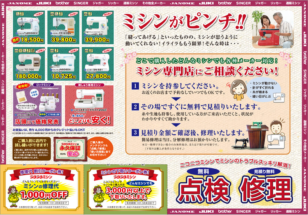 またニコニコミシンでは、無料点検を実施中☆