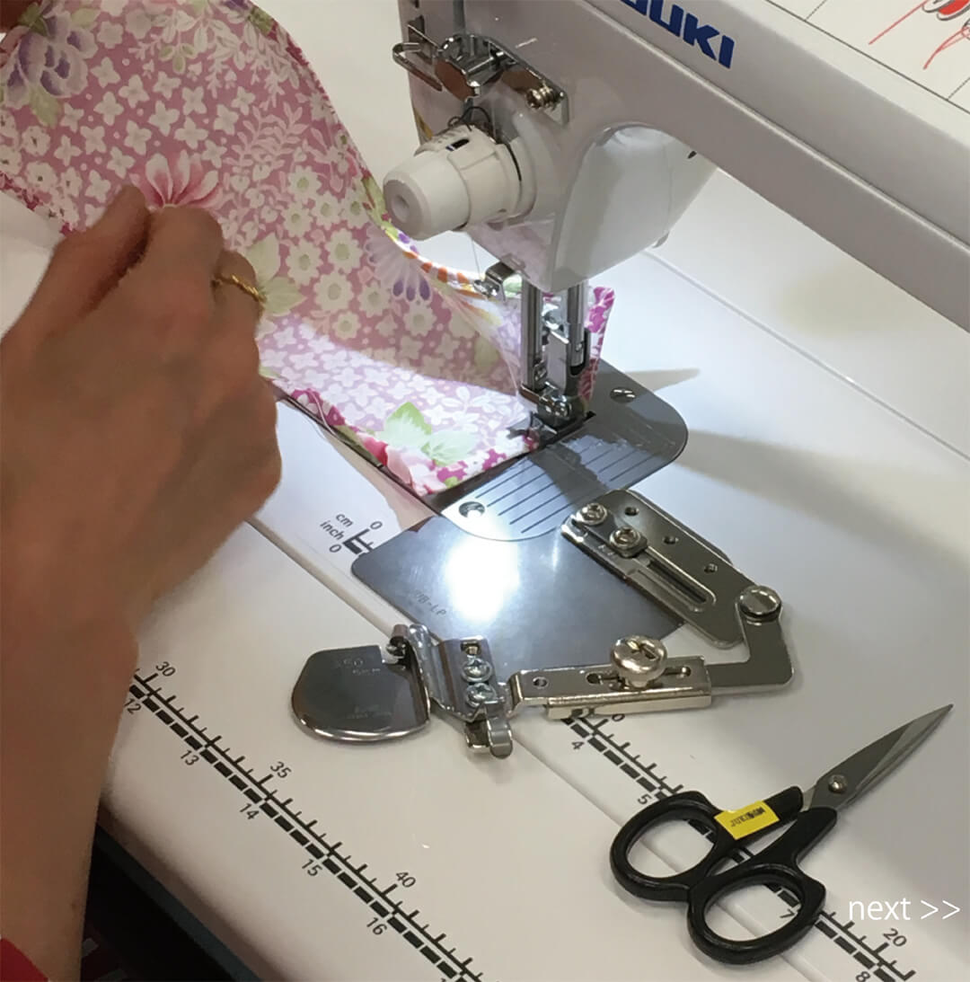 職業用ミシンSL-700EXを使って、8種類のアタッチメントの使い方をレクチャーします。