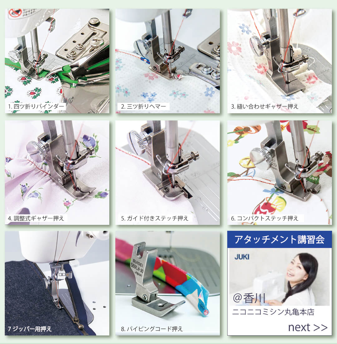 『職業用ミシンアタッチメント講習会』をニコニコミシン丸亀本店さんにて開催いたします!