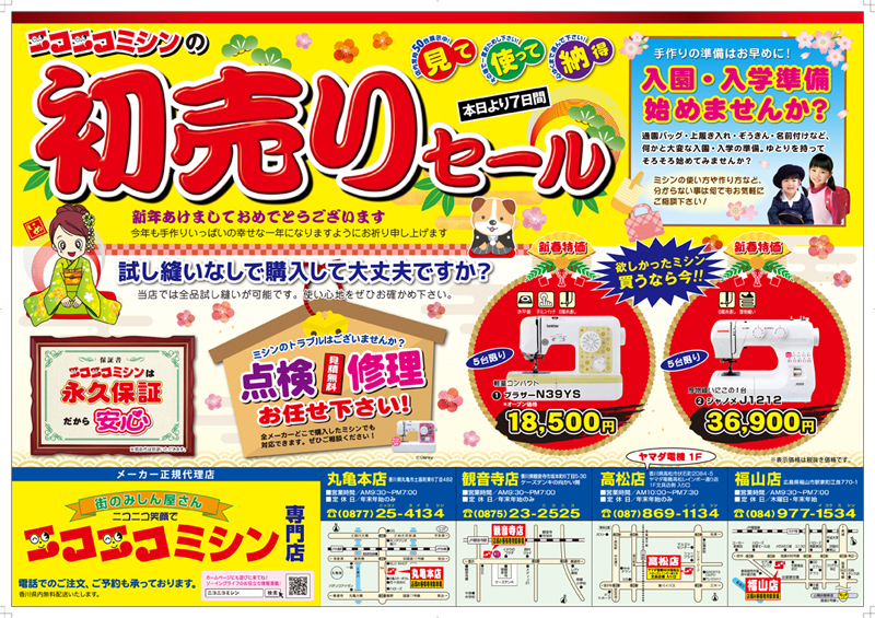 本年も手作りを応援するミシン専門店として皆様のお役に立てるようにスタッフ一同務めさせて頂きます。宜しくお願い致します。