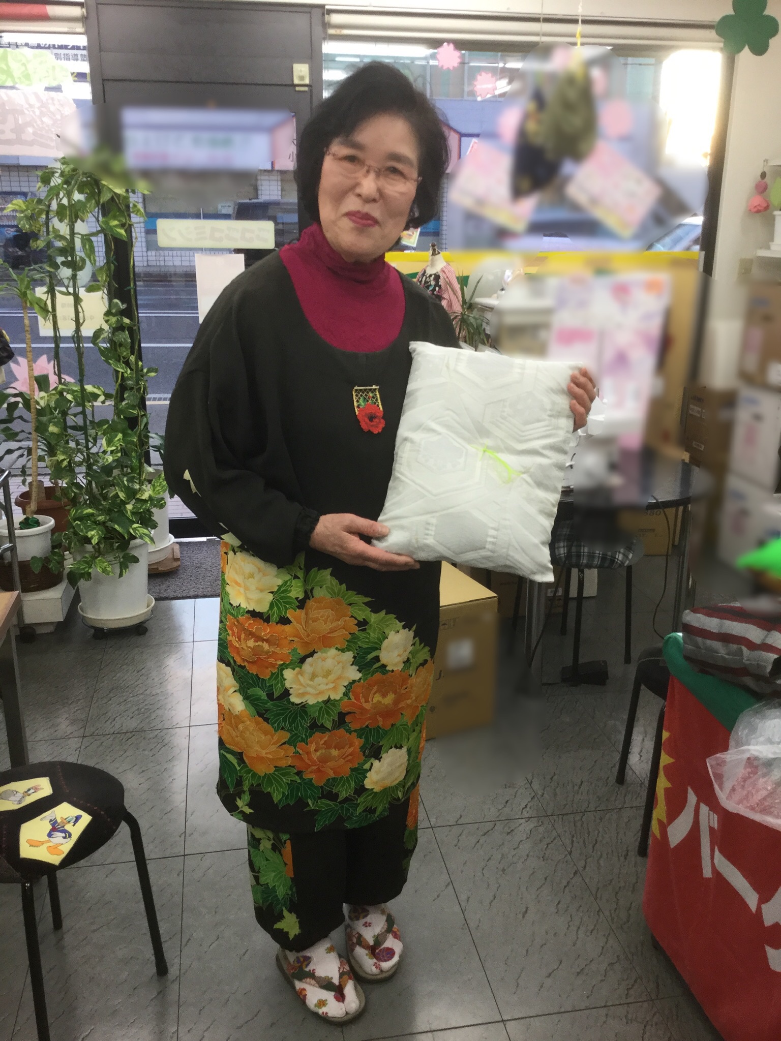 着物の帯をクッションにリサイクル