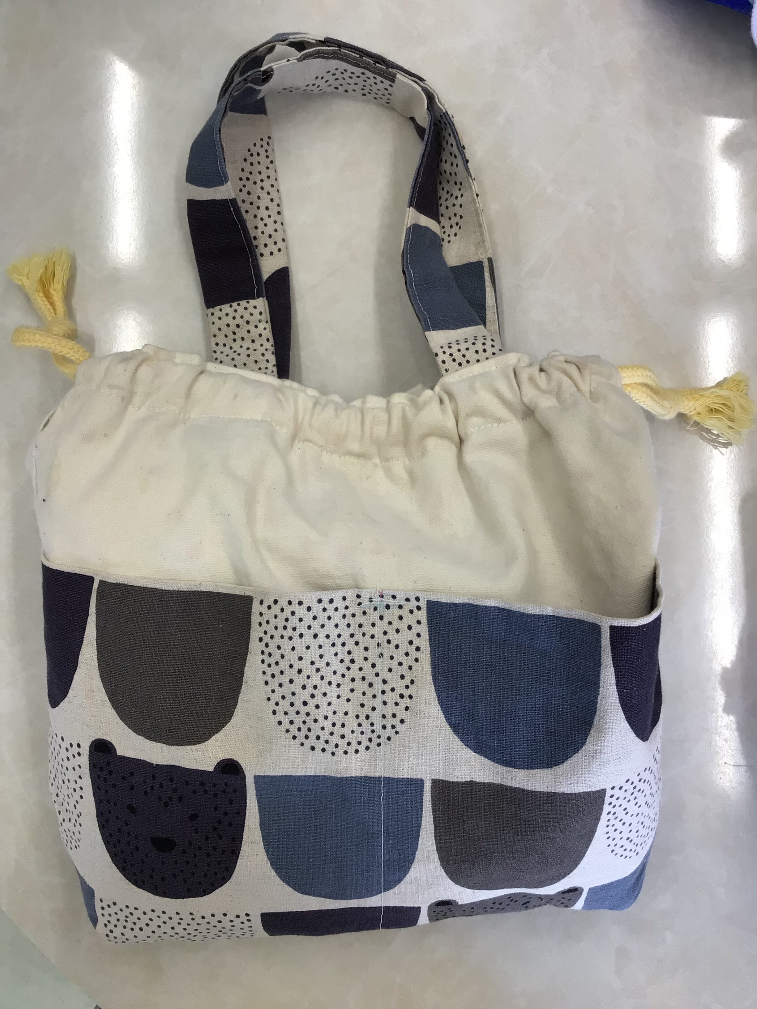 手作りの巾着型のバッグを見せて頂きまし