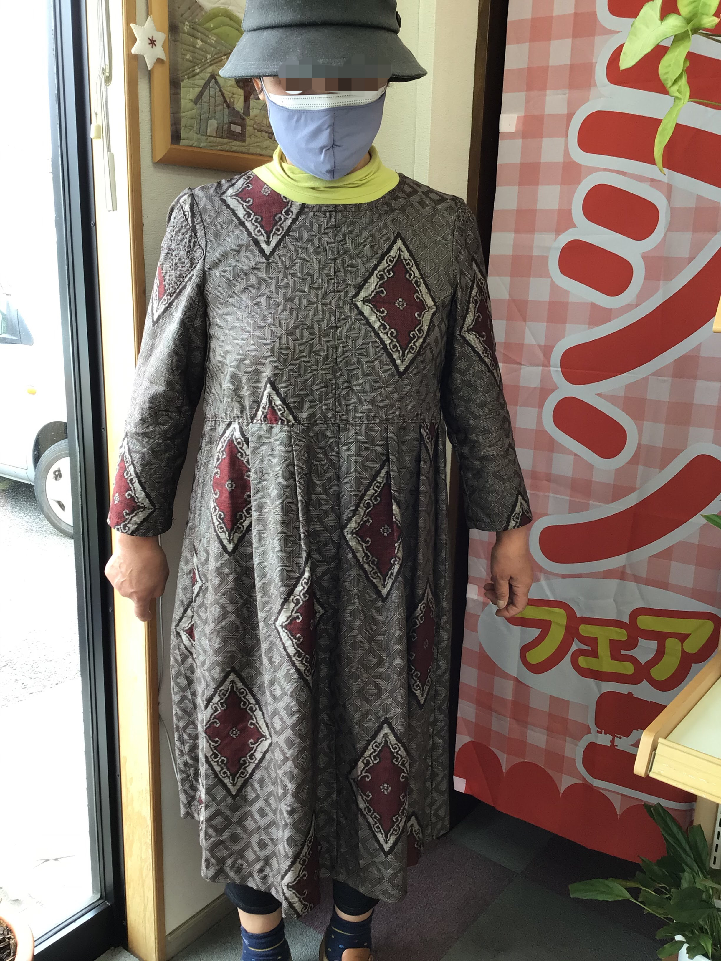 大島の着物をリメイクして作ったとの事