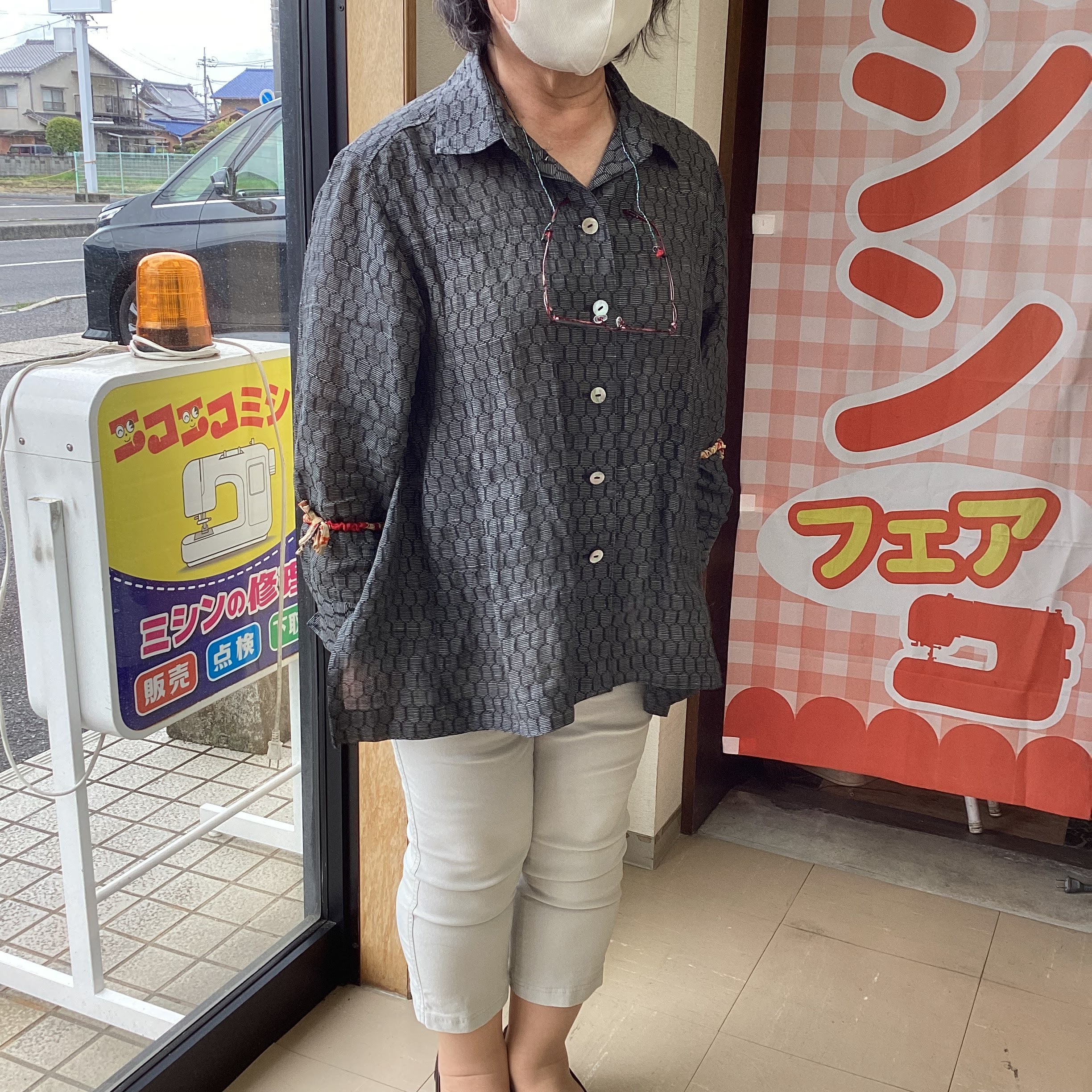 今日は着物地で服を手作りされました